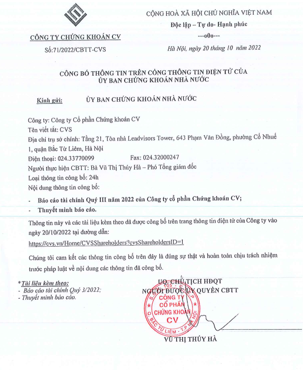 CVS_CBTT_Báo cáo tài chính Quý 3/2022
